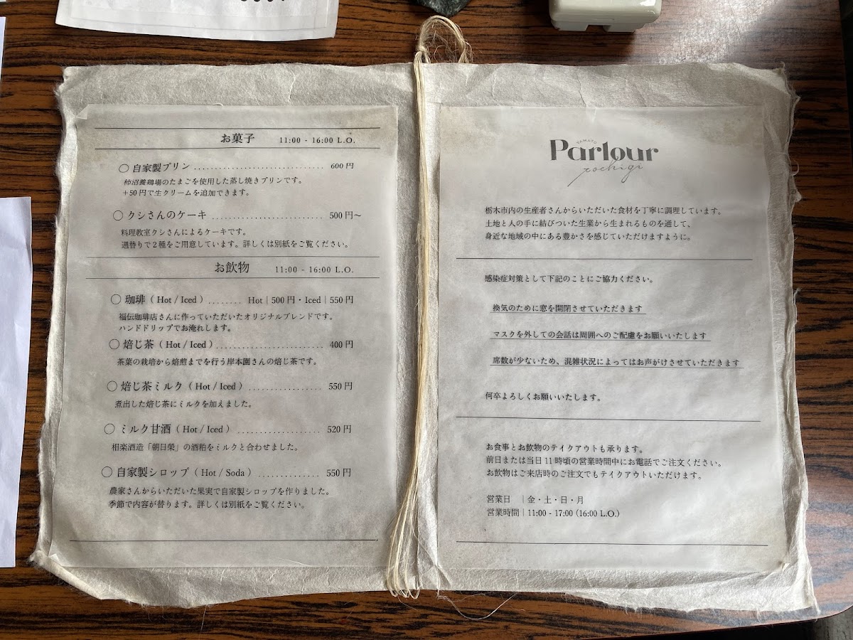 Parlour Tochigi Menu